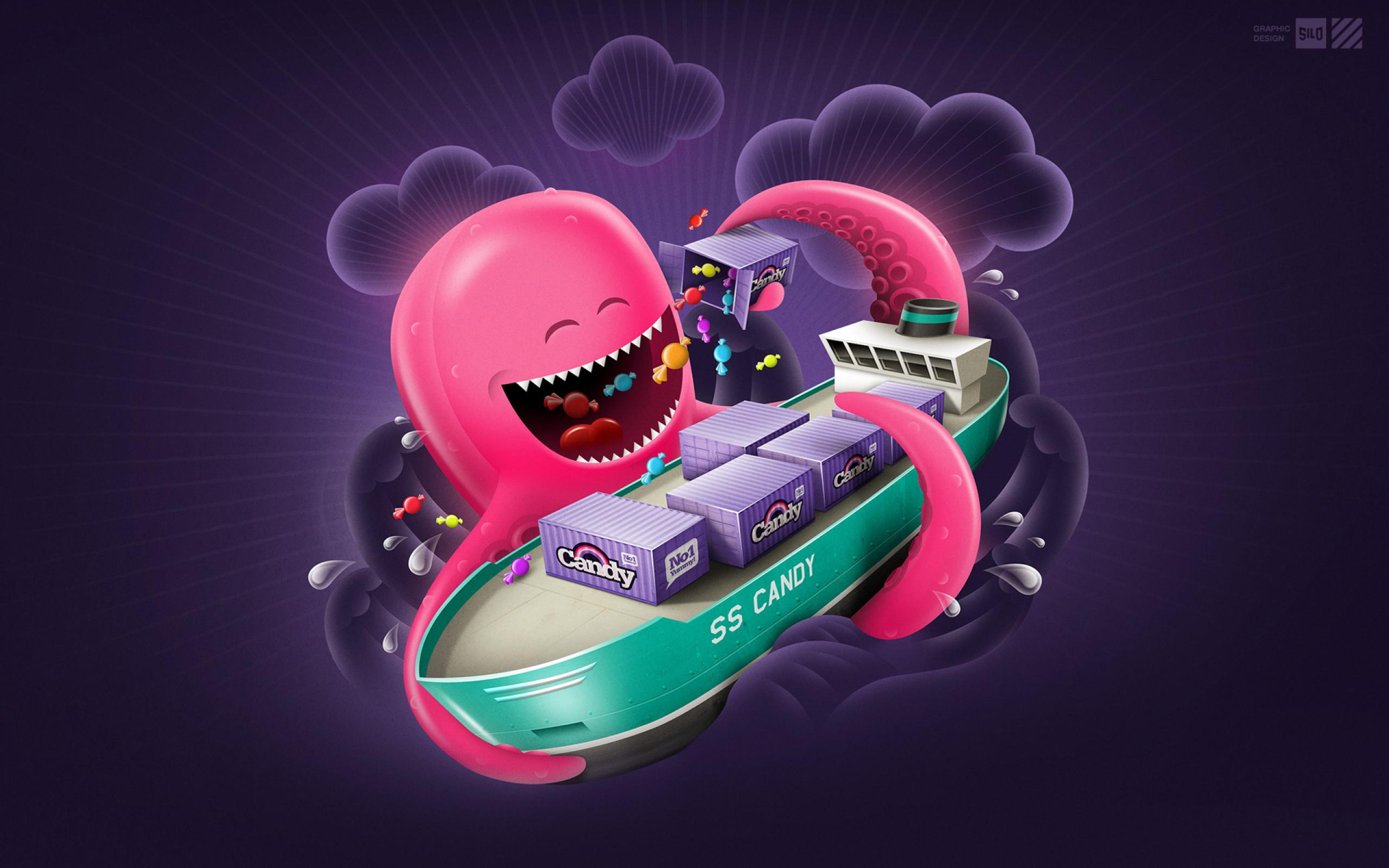 Обои Осьминог с конфетами
