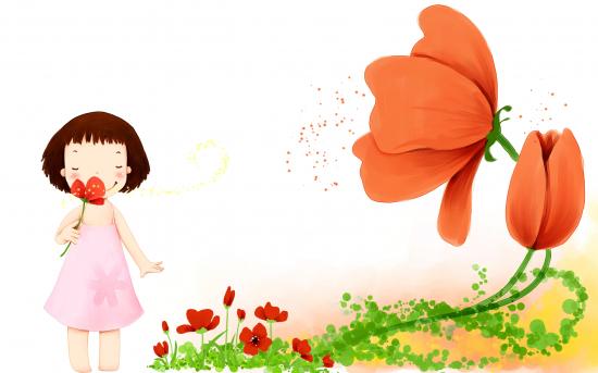 Обои Девочка с красными цветами
