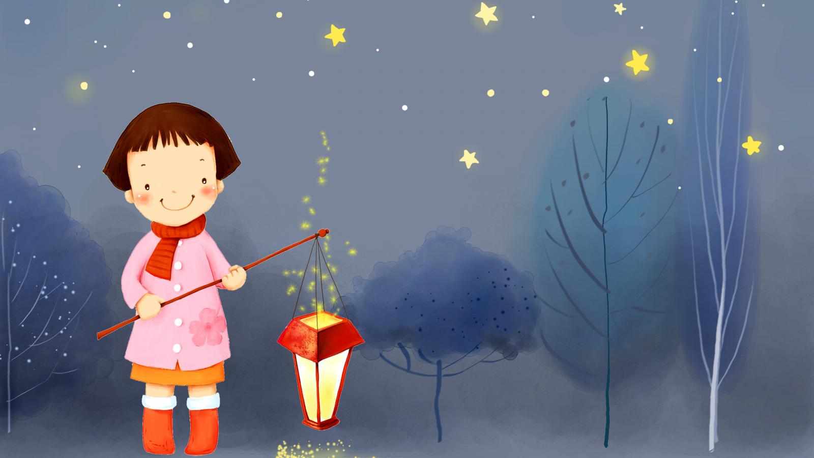 Обои Девочка с фонарем