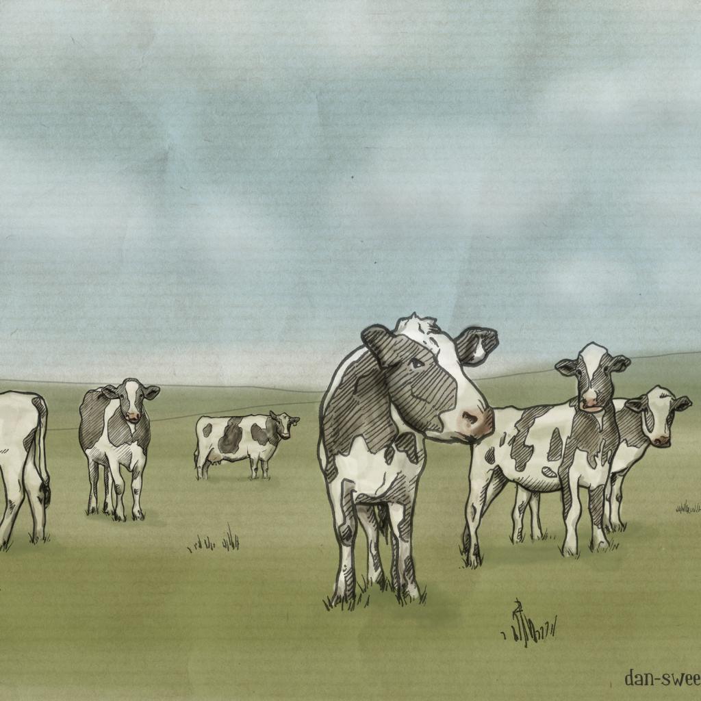 Обои рисованные коровы