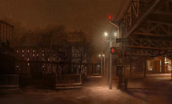 Обои Мелкий снег на ночной улице