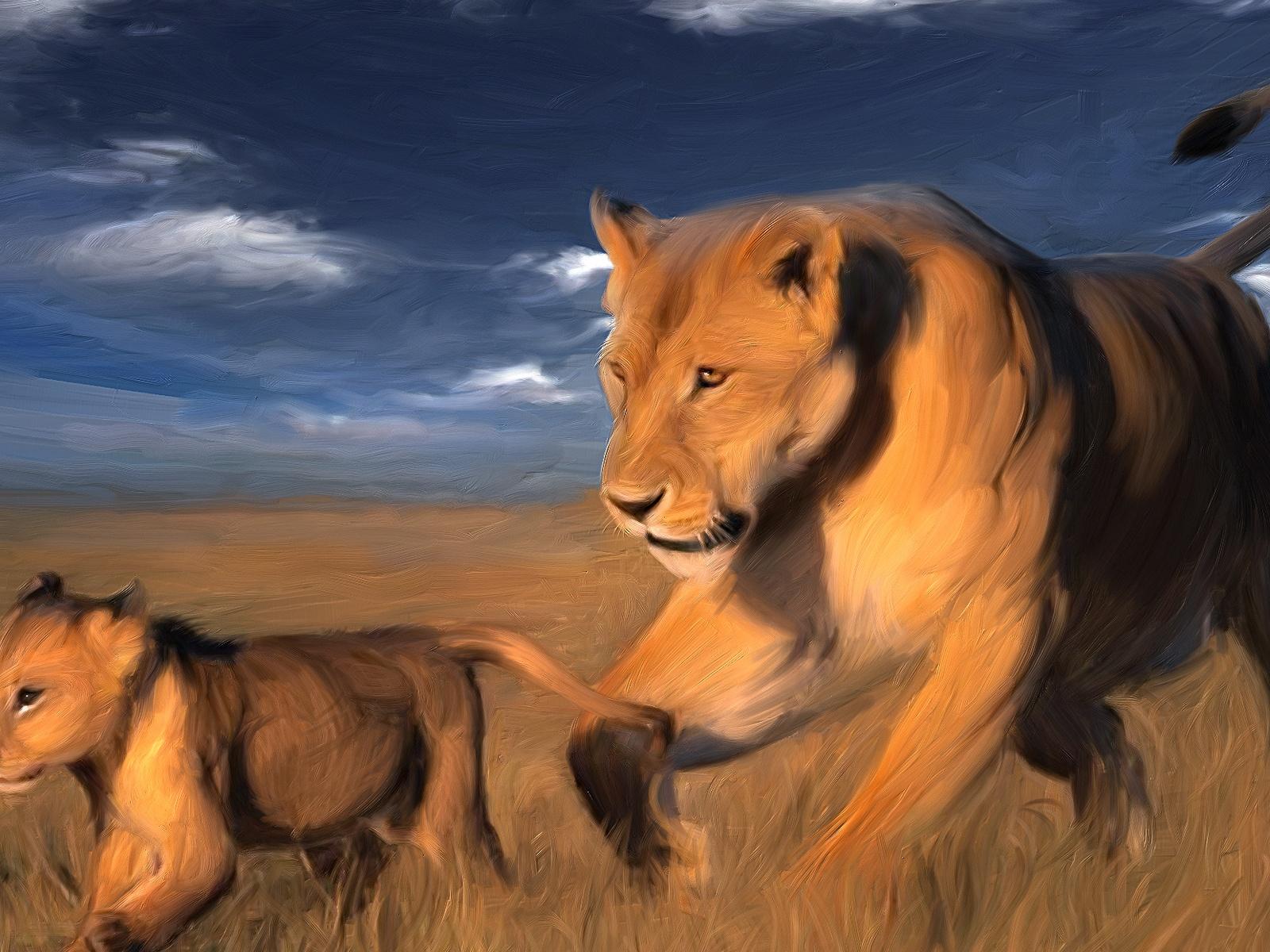 Обои Львицы в саванне