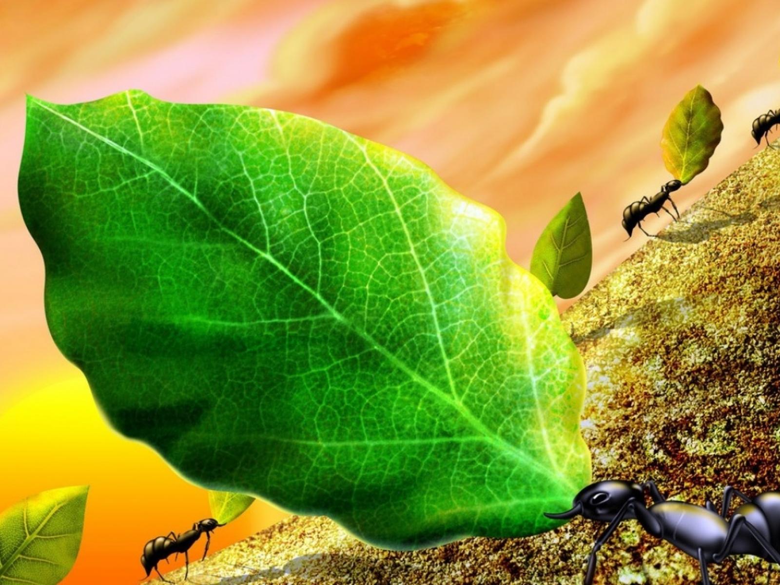 Обои Муравей на листке