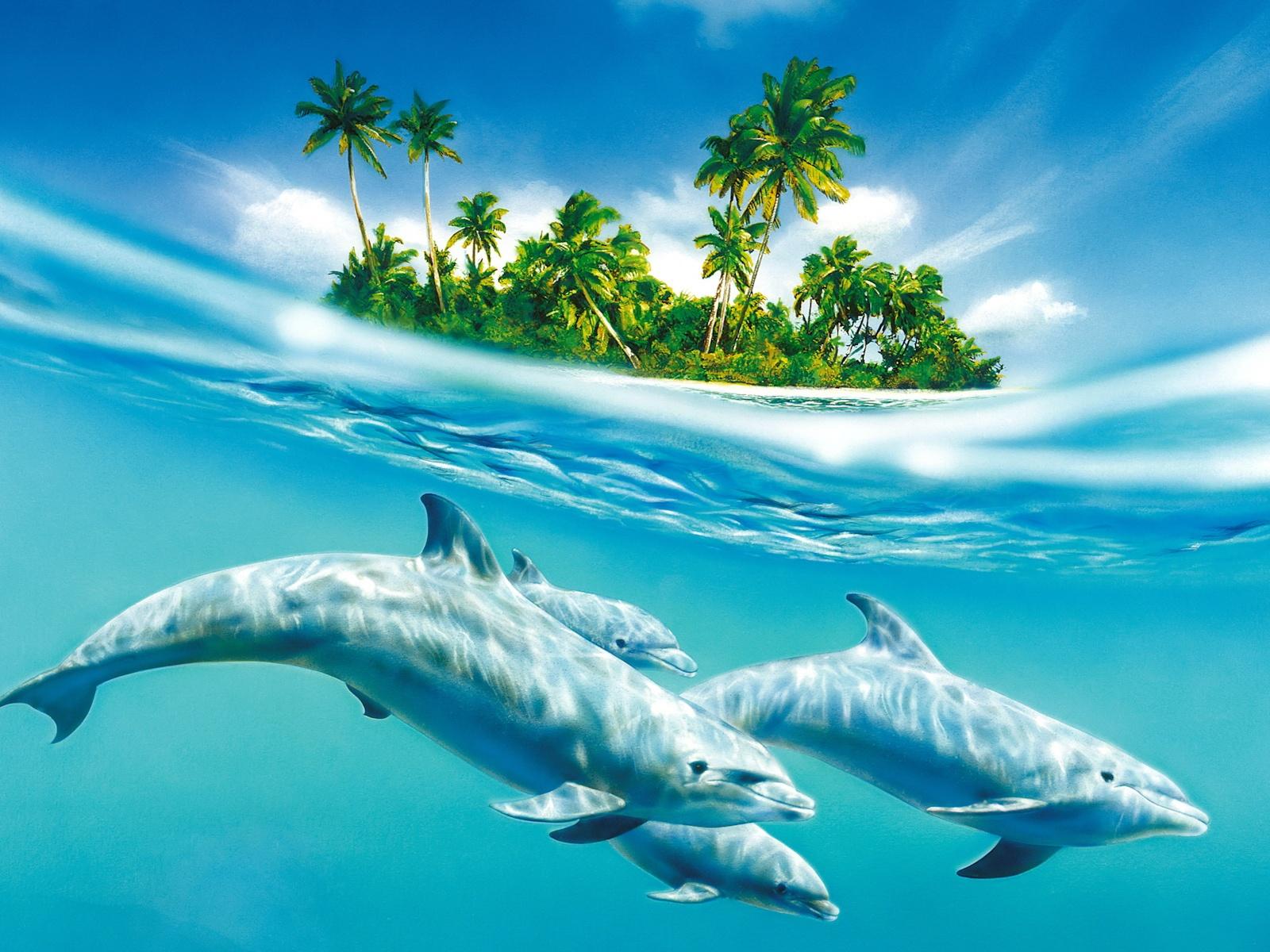Обои Семейство дельфинов