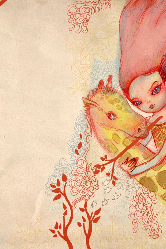 Обои Девочка и жираф