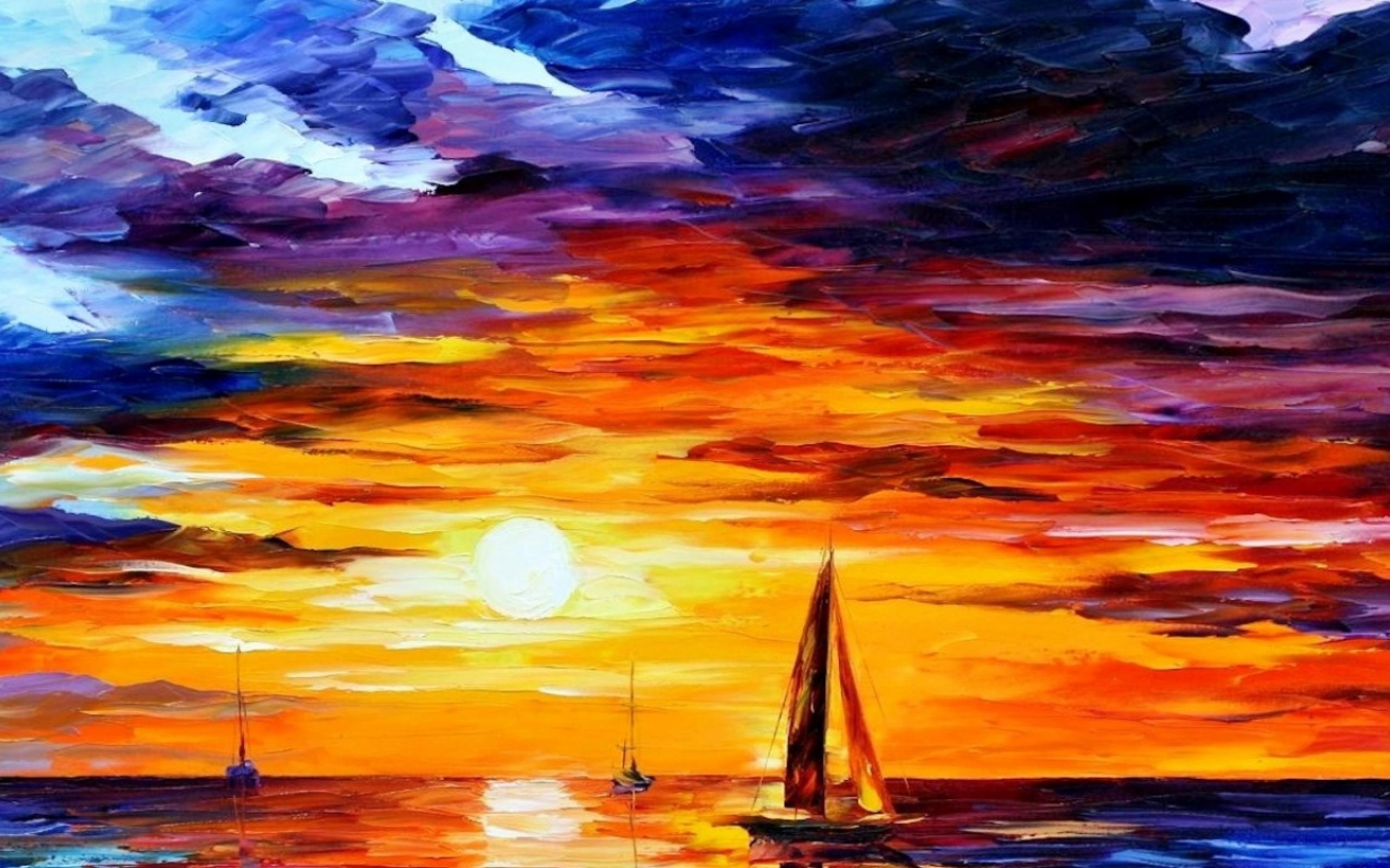 Обои Парусники на закате