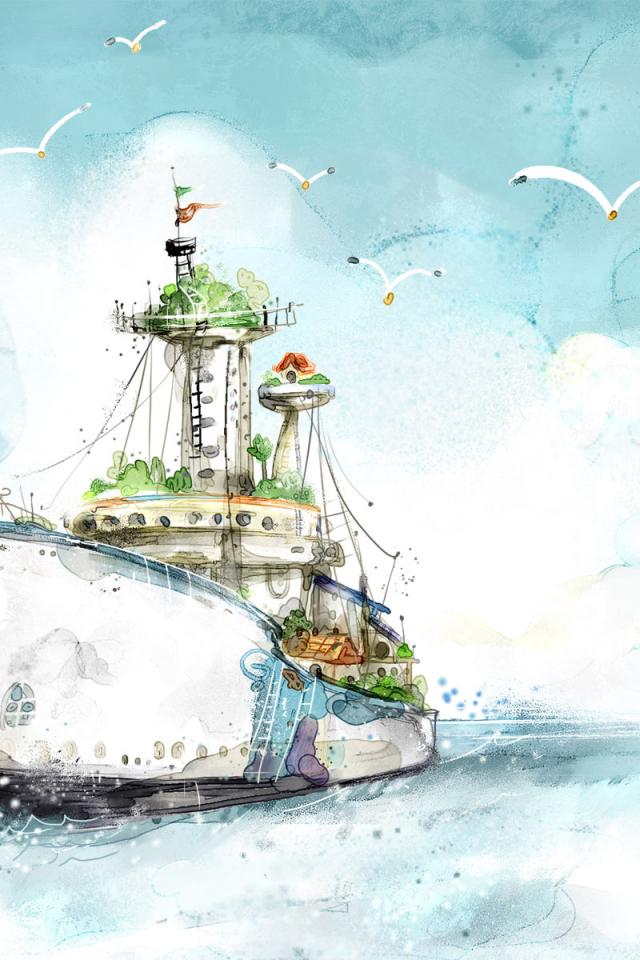 Обои Корабль в море