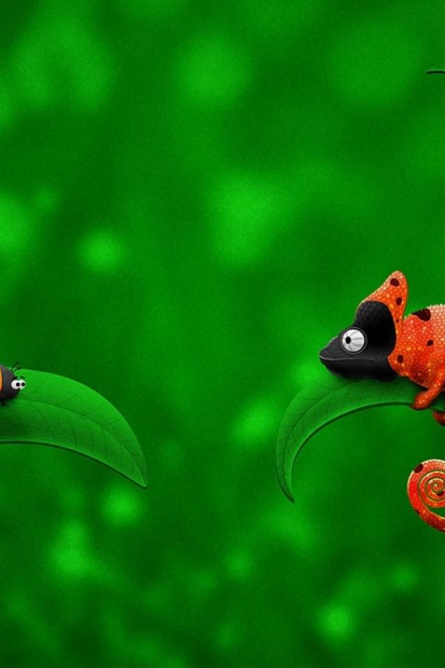 Обои жук и хамелеон