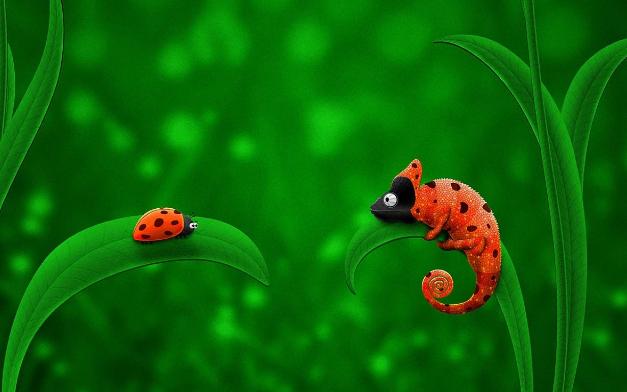 Обои жук и хамелеон