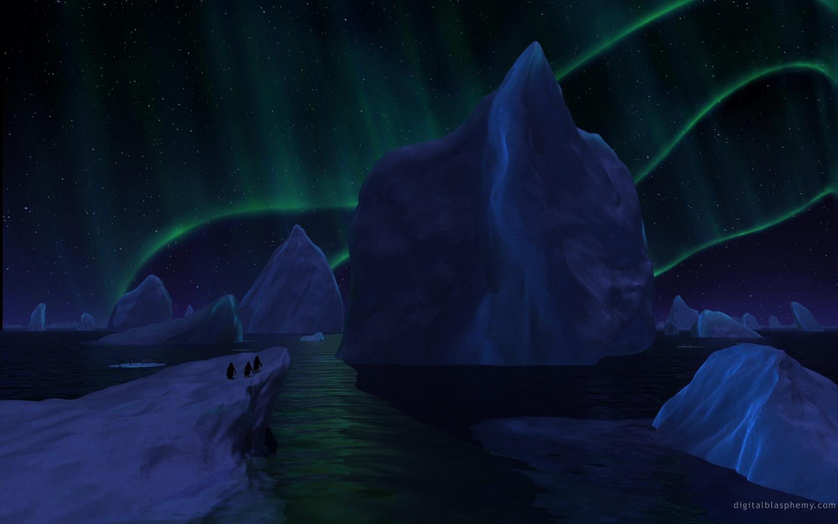 Обои Айсберги под северным сиянием