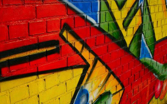 Обои Часть яркого граффити на кирпичной стене
