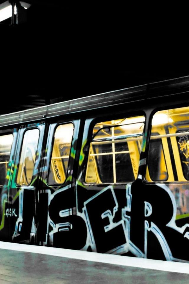 Обои Поезд метро раскрашен граффити