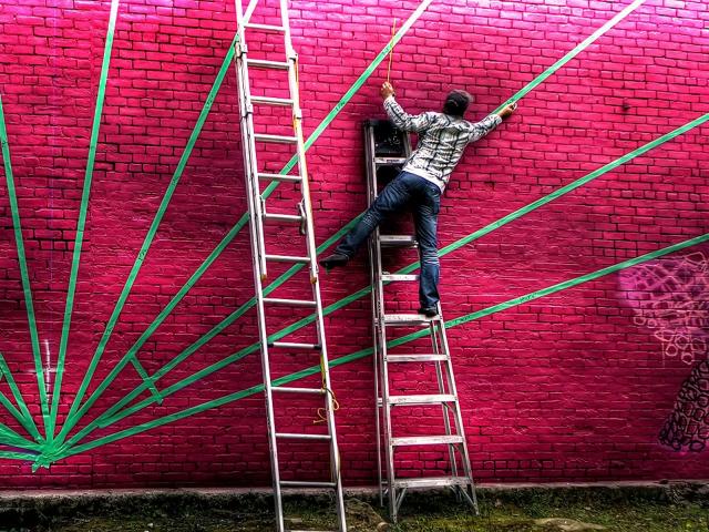 Обои Художник на лестнице