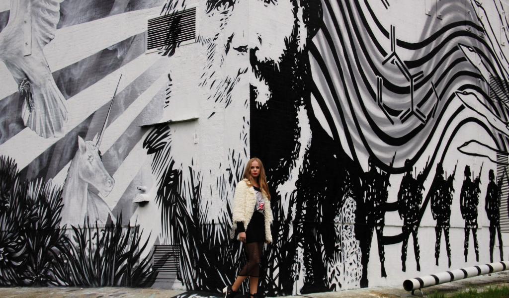 » Обои Девушка на фоне граффити