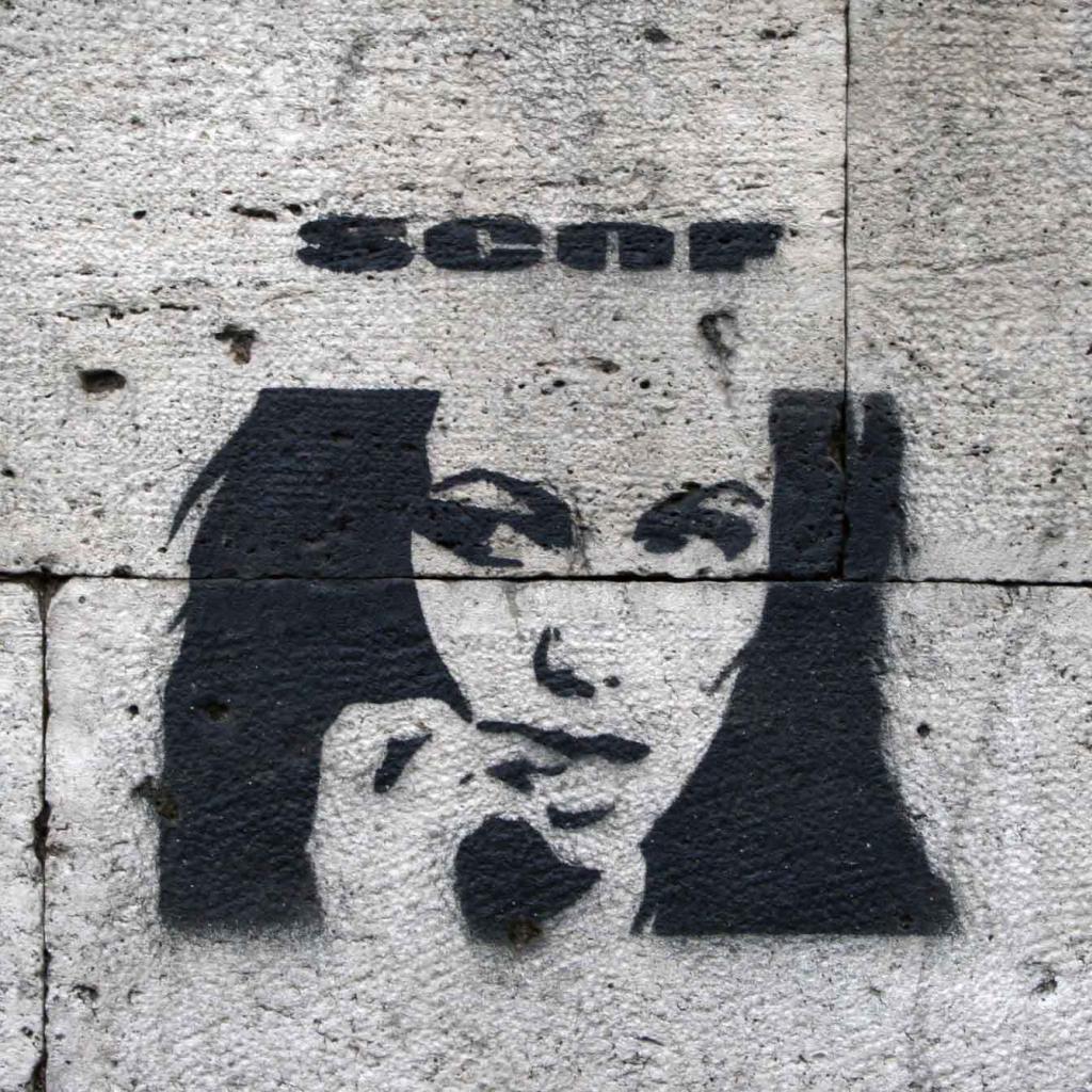 Обои Рисунок мужчины в очках на стене