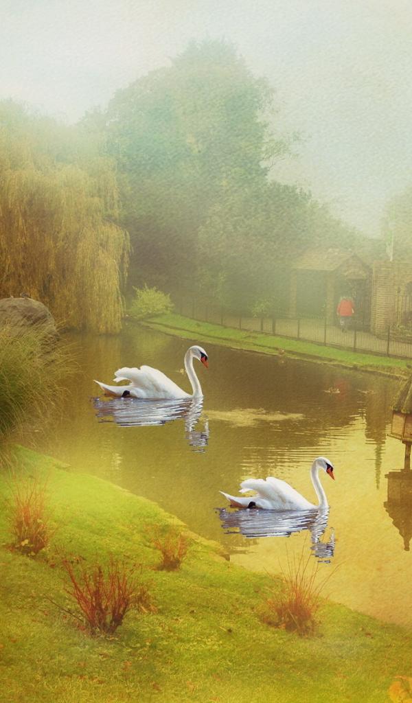Обои Пруд с лебедями