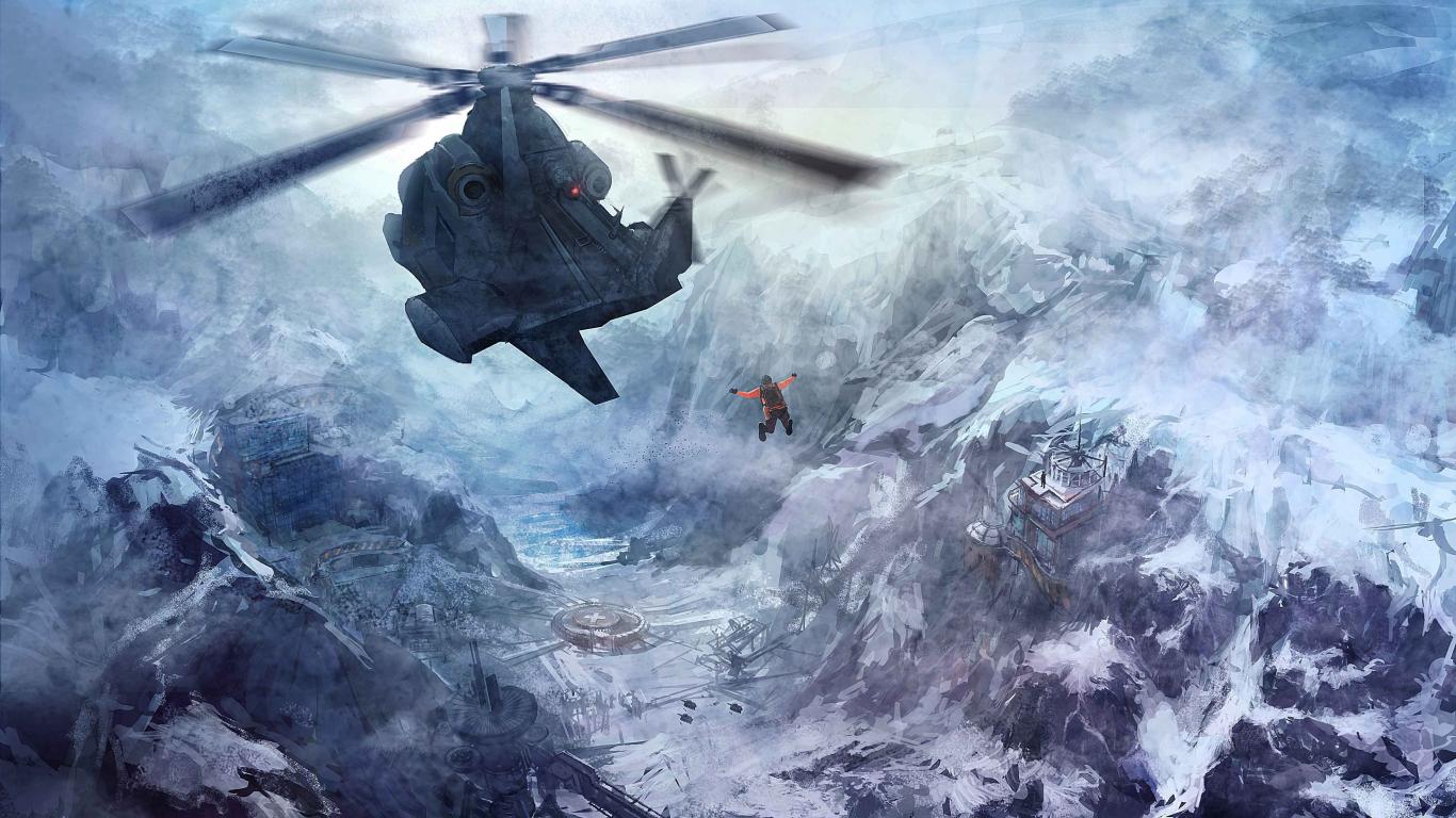 » Обои Человек прыгнул из вертолета