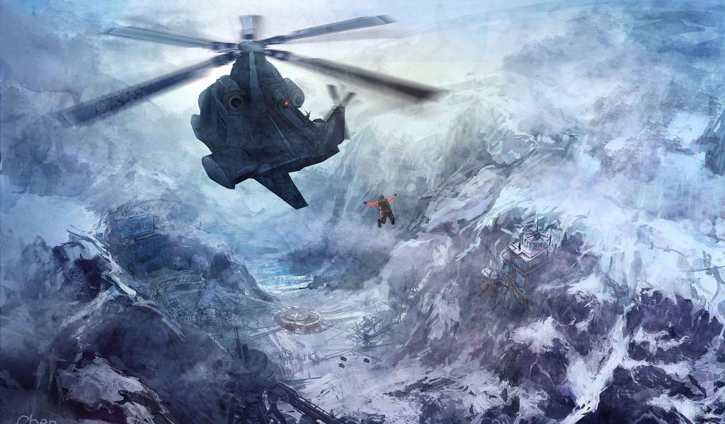» Обои Человек прыгнул из вертолета