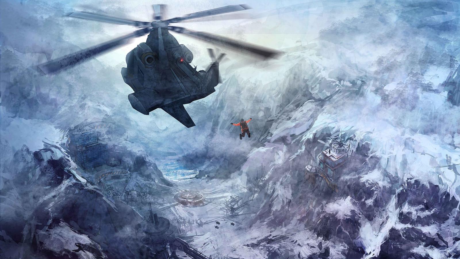 » Обои Человек прыгнул из вертолета