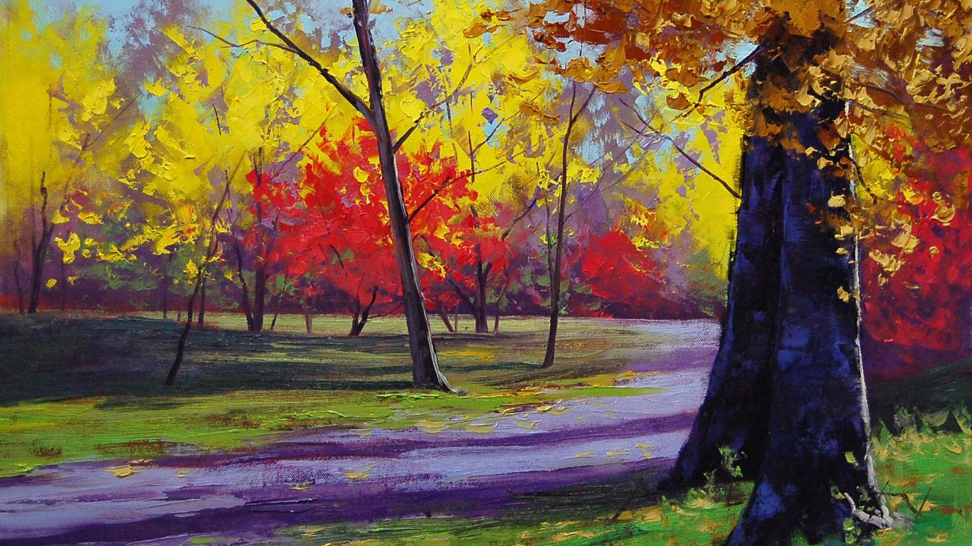 Обои Деревья, Дорога, Листья, дорога в лесу