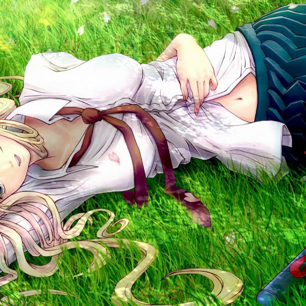 Обои Блондинка лежит на траве, рисунок