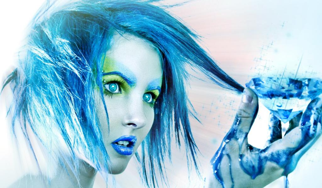 Обои Синеволосая девушка смотрит на кристалл