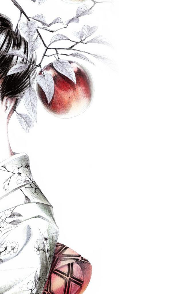 Обои стиль, кимано, гейша, яблоки