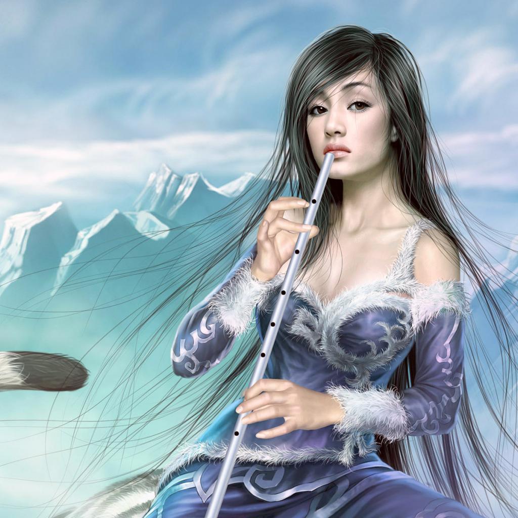 Обои Девушка с музыкальным инструментом