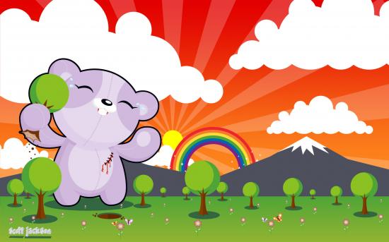 Обои Радуга медведь деревья горы