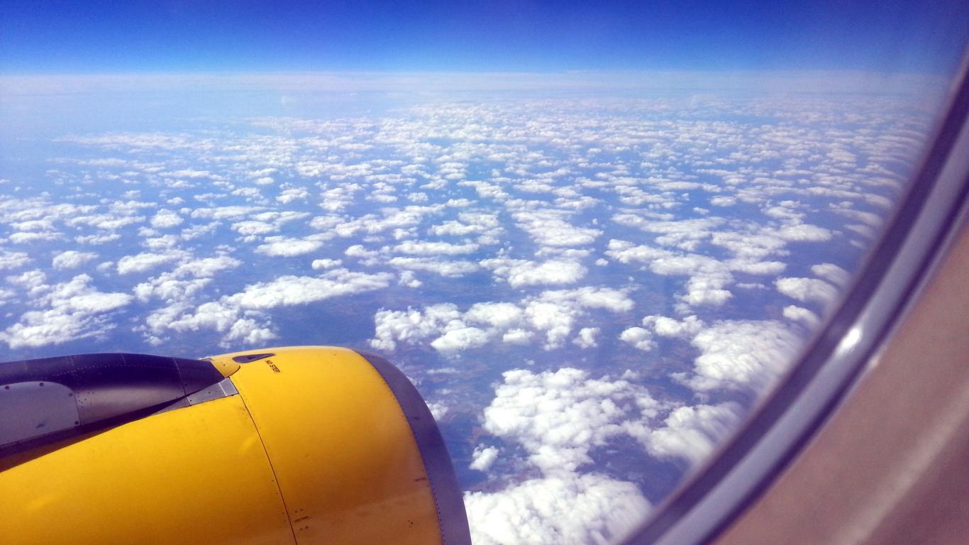 Обои Вид из окна желтого самолета