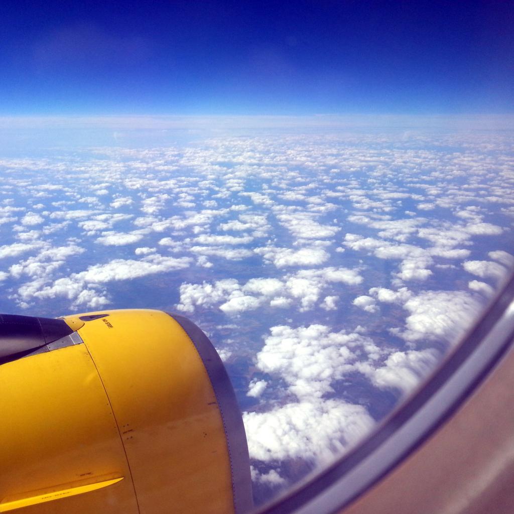 Обои Вид из окна желтого самолета