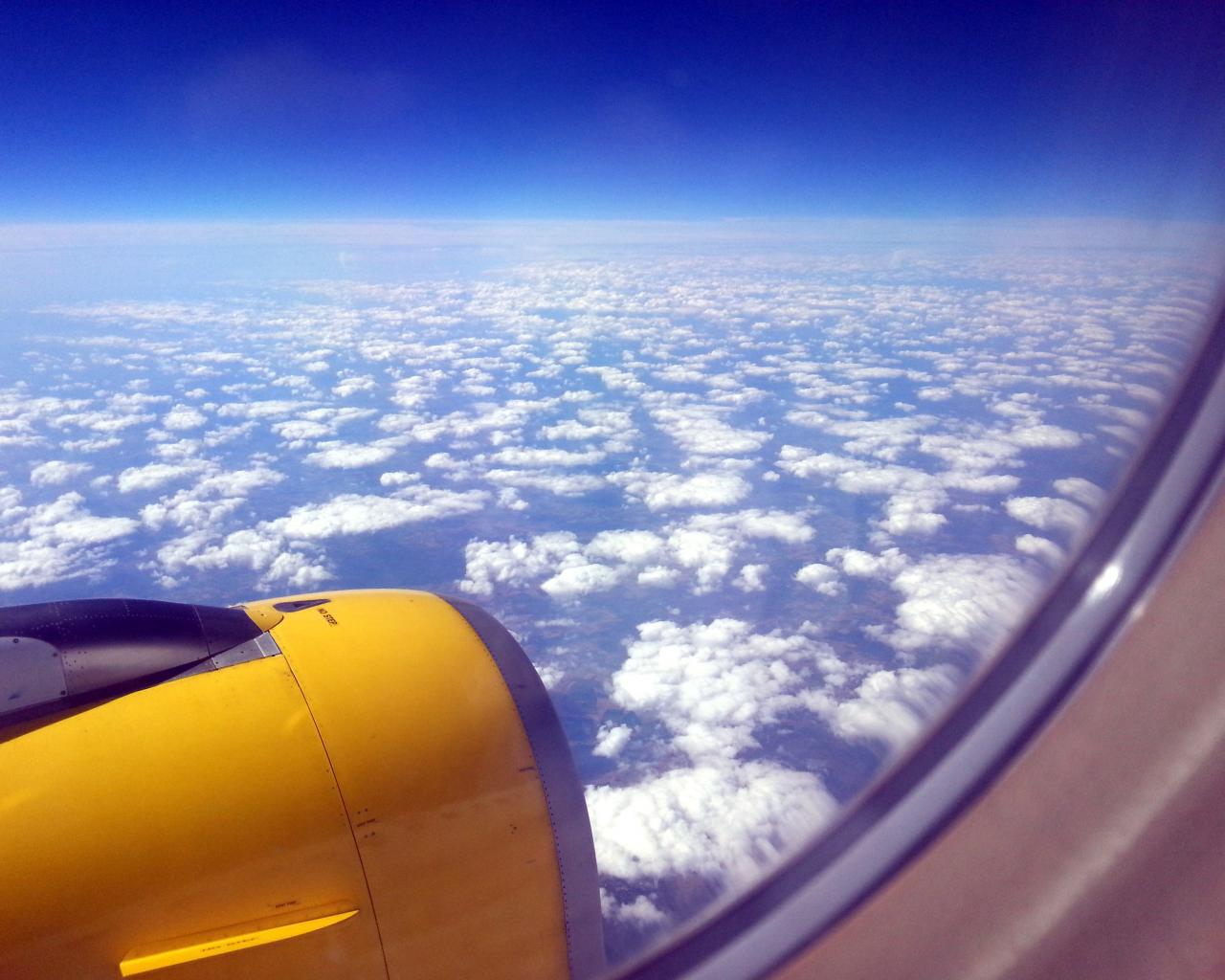 Обои Вид из окна желтого самолета