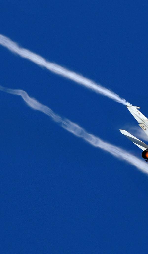 Обои Белый истребитель оставляет за собой след из дыма
