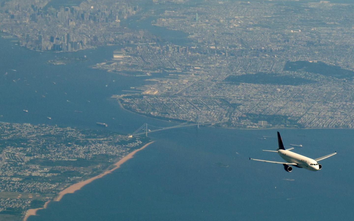 Обои Мегаполис под крыльями пассажирского самолета