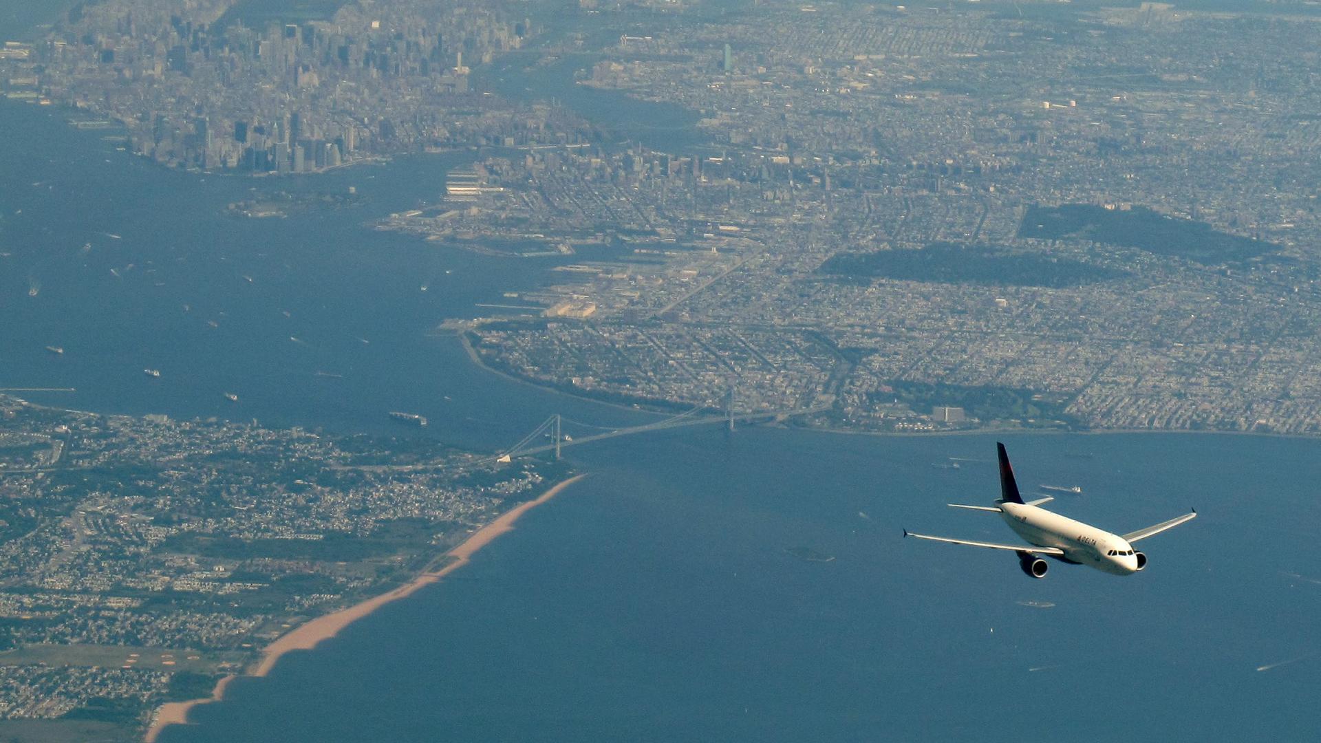Обои Мегаполис под крыльями пассажирского самолета