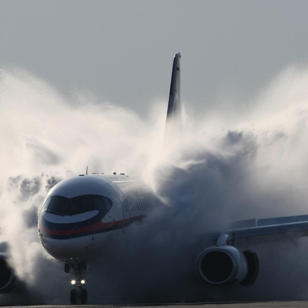 Обои Самолет пролетает облако