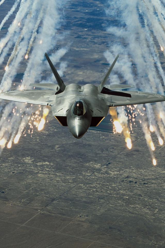 » Обои Истребитель произвел отстрел ракет
