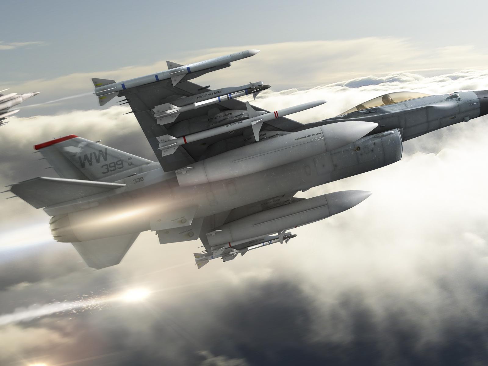 Обои Ракеты на самолете Ф-16