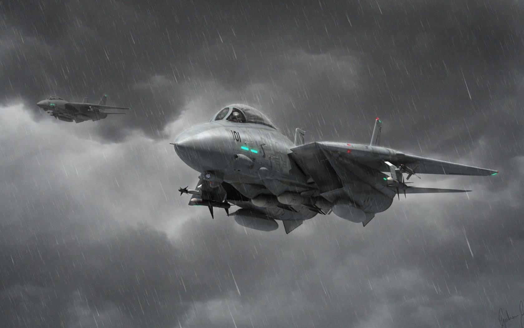 Обои Истребители под дождем