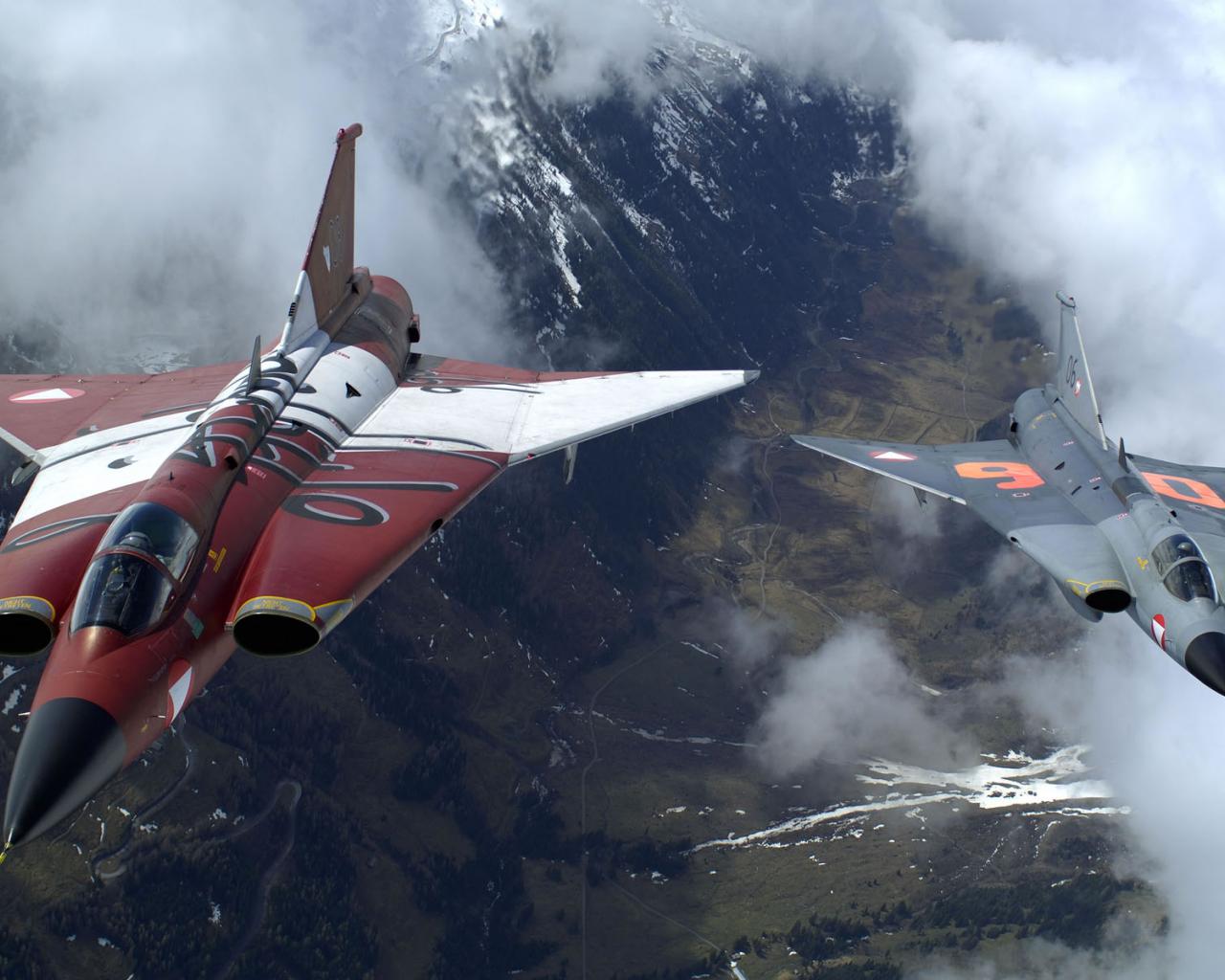 Обои Самолет истребитель Горы