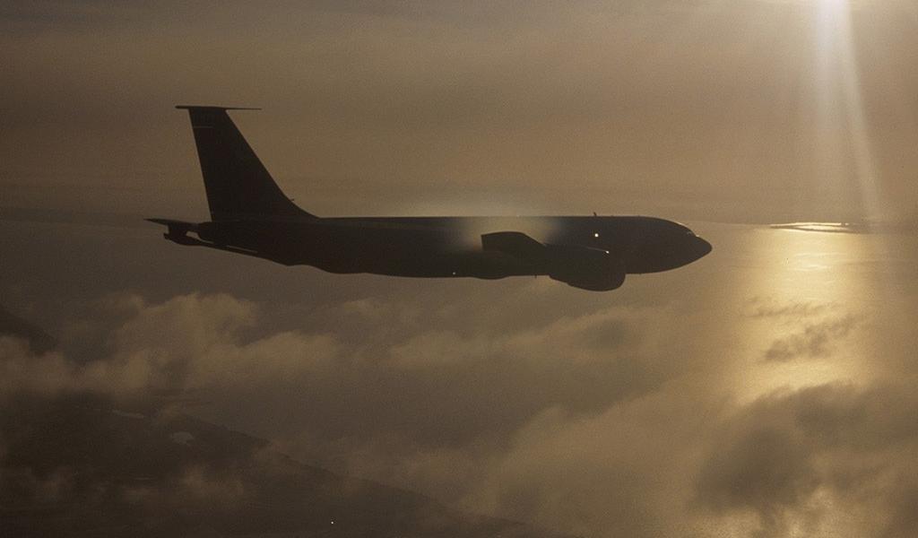 Обои Военный самолет в облаках