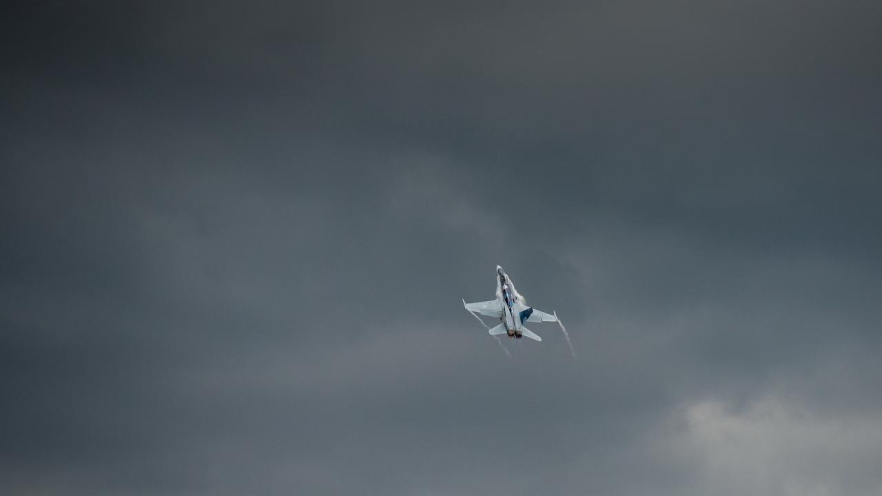 Обои Истребитель летит в небе