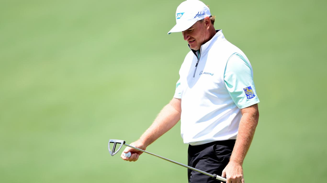 Обои Легенда гольфа Эрни Элс с клюшкой для гольфа
