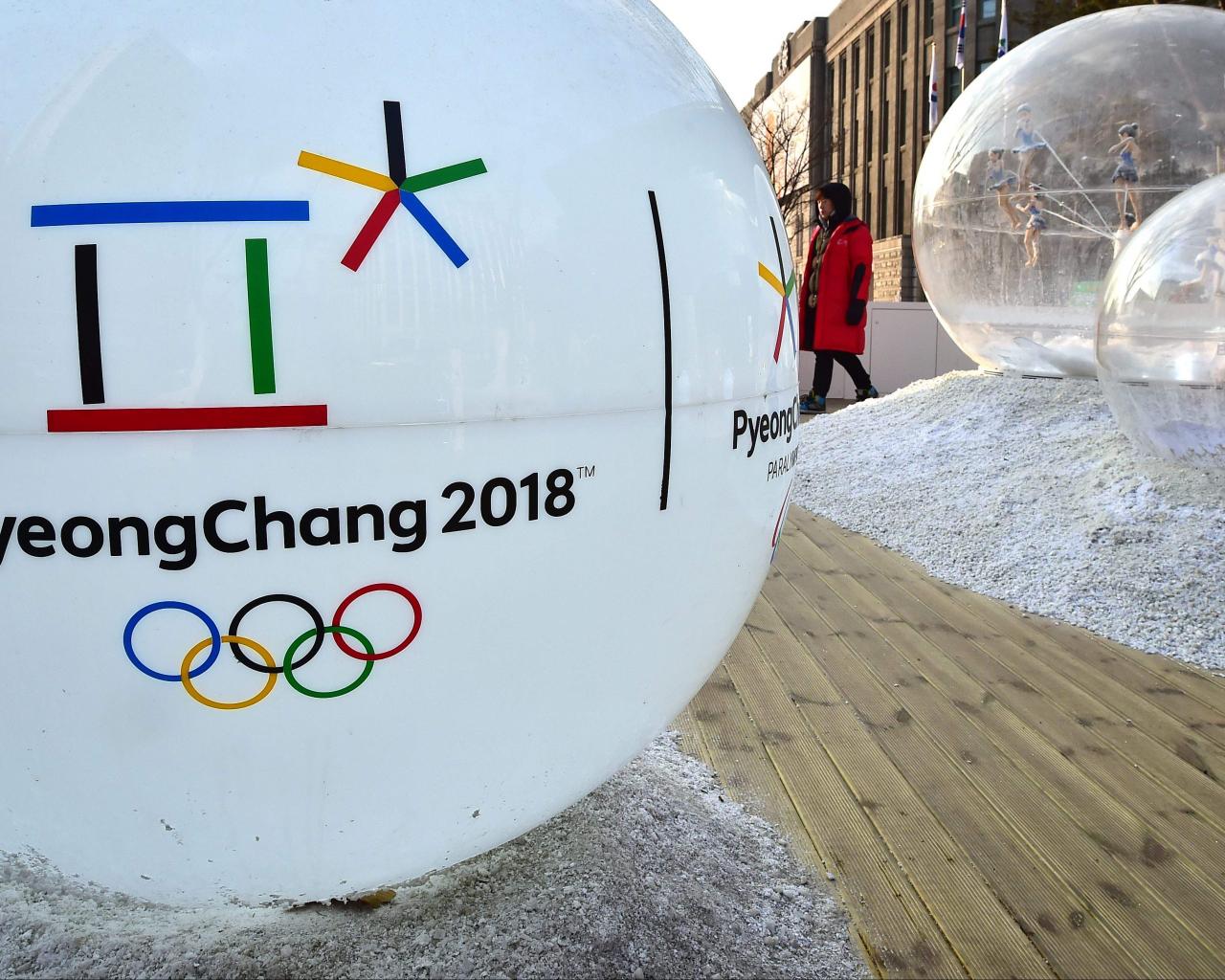 Обои Белый шар с логотипом Зимних Олимпийских игр 2018