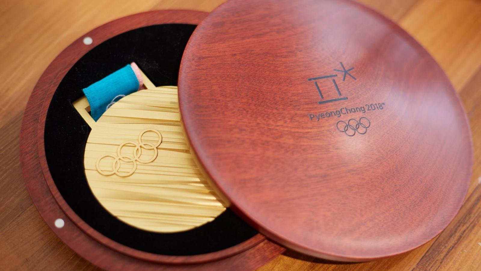 Обои Медаль зимних олимпийский игр 2018 в деревянном футляре
