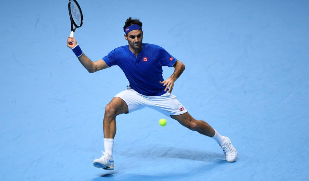 Обои Теннисист Роджер Федерер отбивает мяч ракеткой на корте