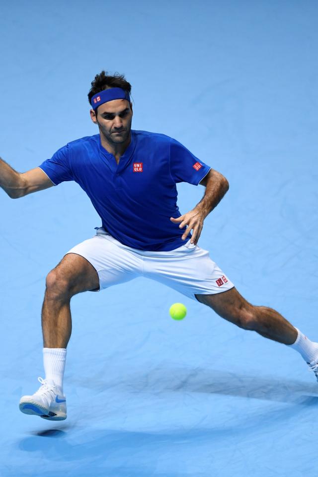 Обои Теннисист Роджер Федерер отбивает мяч ракеткой на корте