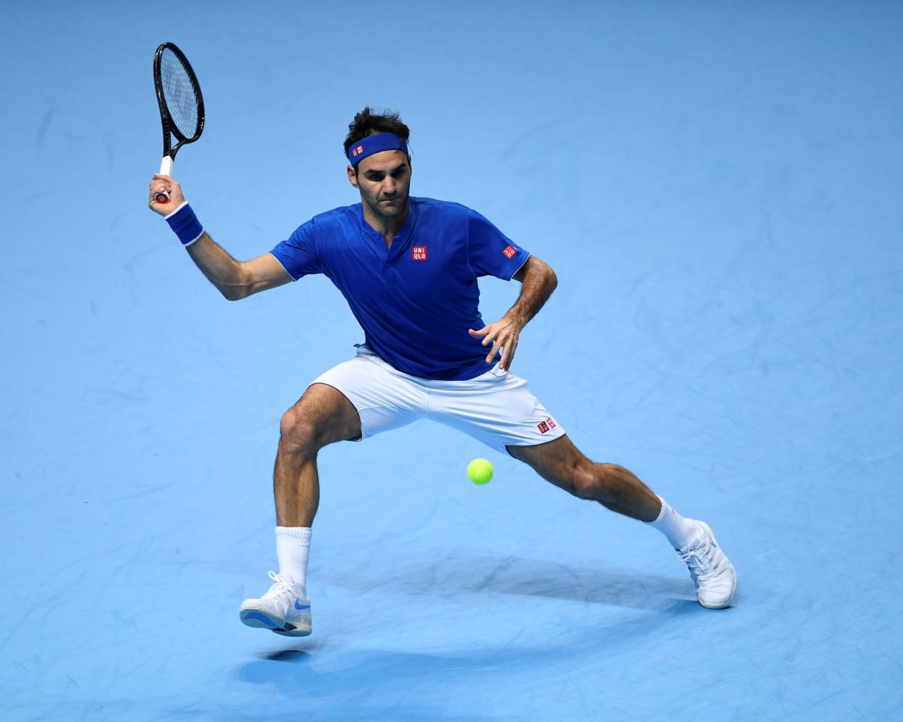 Обои Теннисист Роджер Федерер отбивает мяч ракеткой на корте