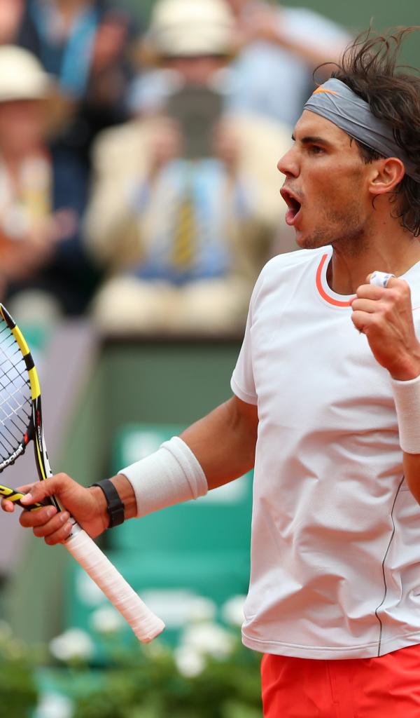 Обои Испанский теннисист Рафаэль Надаль с ракеткой на корте