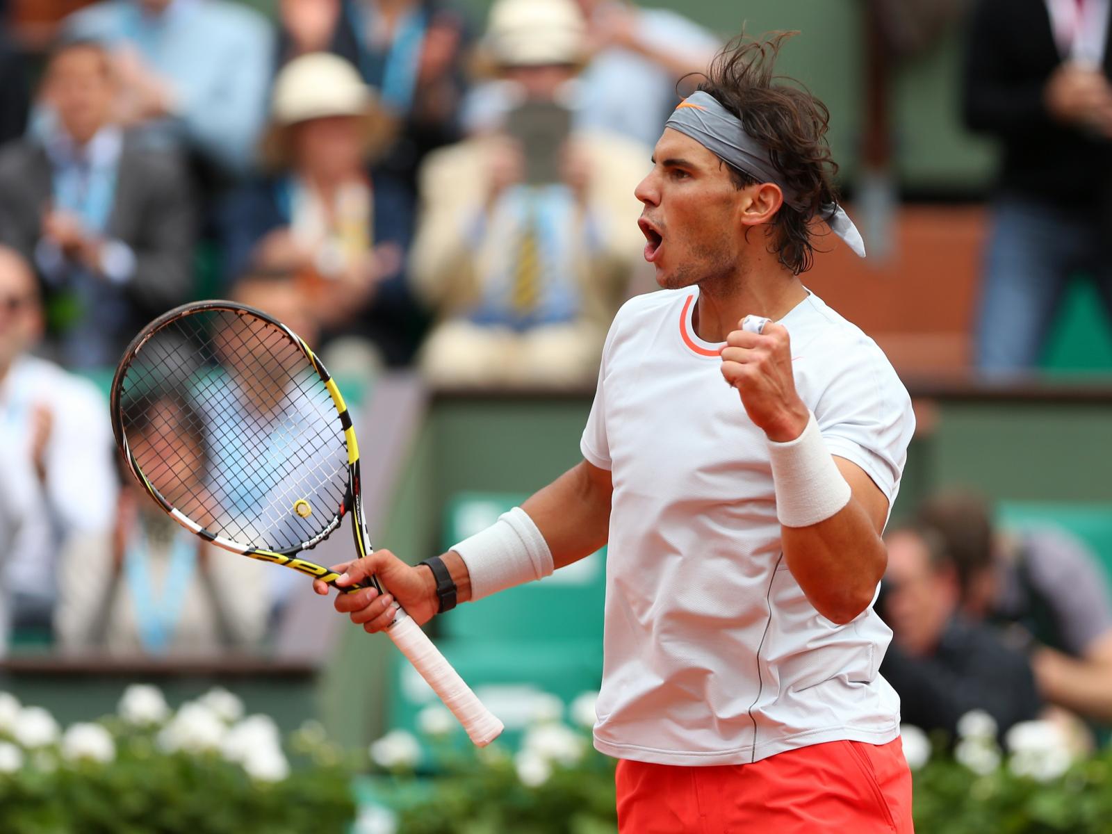 Обои Испанский теннисист Рафаэль Надаль с ракеткой на корте